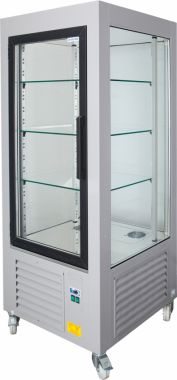 Szafa cukiernicza JOLA 4 MAL jest urządzeniem przeznaczonym do ekspozycji wszelkich artykułów cukierniczych takich jak torty, ciasta, czekolady, desery. Korpus zewnętrzny szafy JOLA 4 MAL wykonany jest z blachy malowanej proszkowo (istnieje możliwość wyboru koloru z wzornika IGLOO). Jej wygląd i możliwość konfiguracji kolorystycznej sprawia, że urządzenie dopasuje się do najczęściej spotykanych wystrojów wnętrz cukierni, kawiarni czy różnego typu sklepów. Urządzenie posiada system półek szklanych z możliwością zastosowania ich w wersji obrotowej, co pozwala pięknie wyeksponować produkty. W szafie zamontowano drzwi rozwierne z szybą zespoloną i agregat chłodniczy wewnętrzny znajdujący się w dolnej części urządzenia. Wnętrze urządzenia oświetlone przy pomocy energooszczędnej świetlówki LED.