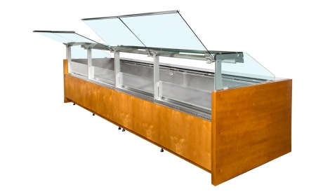 Lada chłodnicza przeznaczona do przechowywania i ekspozycji produktów spożywczych dostępna w dwóch wersjach chłodzenia dynamicznym i statycznym (W-PS-k). Lada wyposażona w teleskopowy system podnoszenia szyb, komory przechowalnicze wykonane z blachy nierdzewnej kwasoodpornej, system automatycznego odszraniania, blat roboczy nierdzewny (szerokość 25 cm, możliwość wymiany na blat granitowy). Lada posiada wbudowany agregat jak i możliwośc podłączenia zewnętrznego agregatu. Zakres temp. wnętrza +2ºC do +8ºC. Głębokośc lady to 1155 mm a dostępne długości to 1320, 1560, 2060, 2560, 3060 mm.