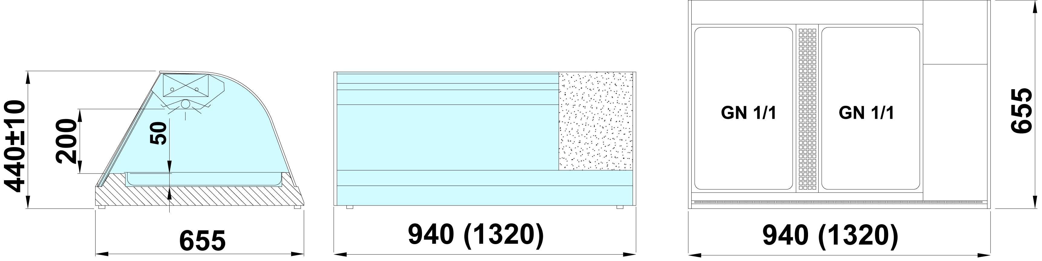| ekspozycja przystosowana pod pojemniki GN 1/1 o głębokości do 40 mm |