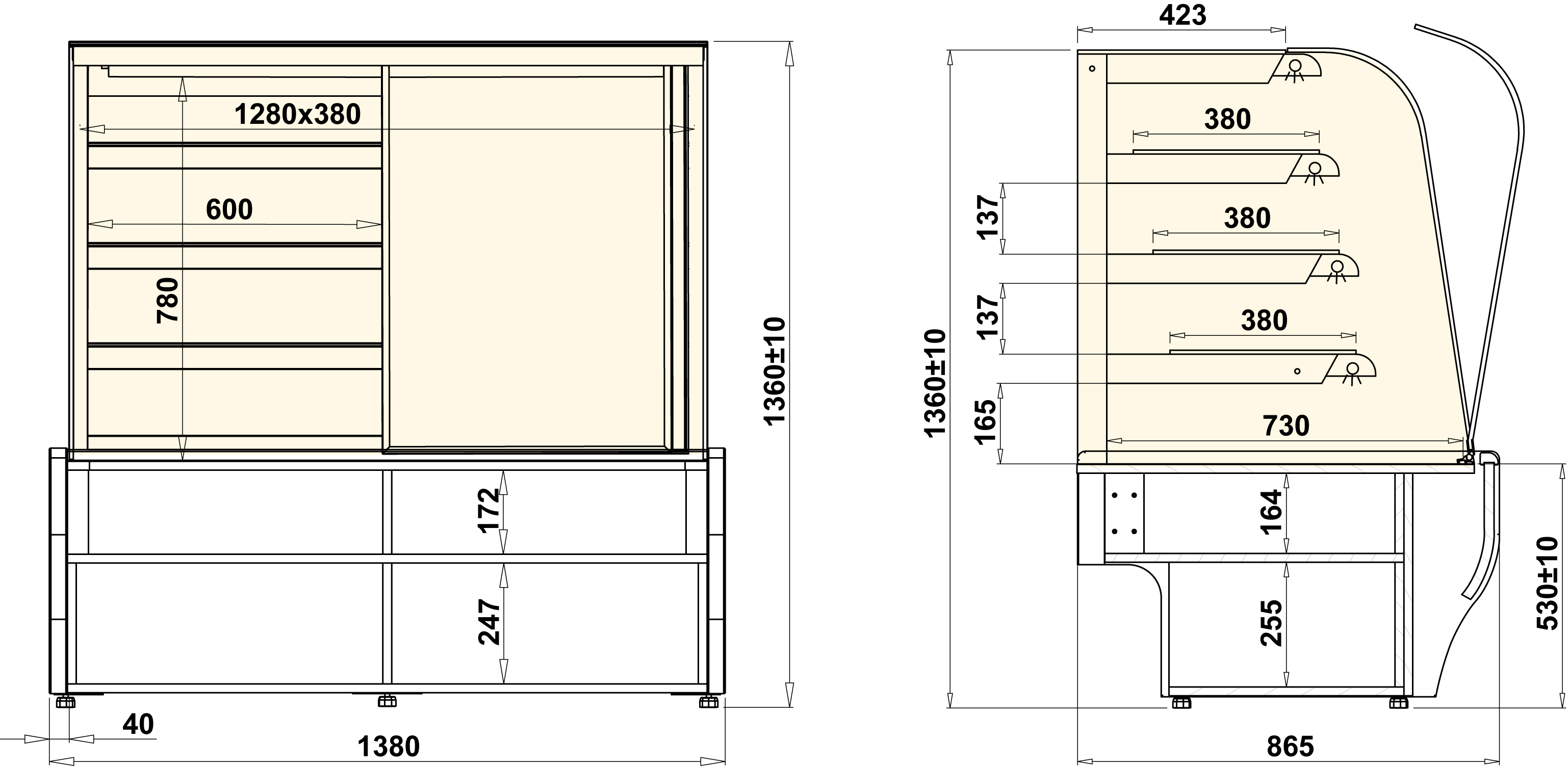 | oświetlenie każdej półki świetlówki LED |