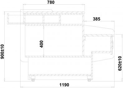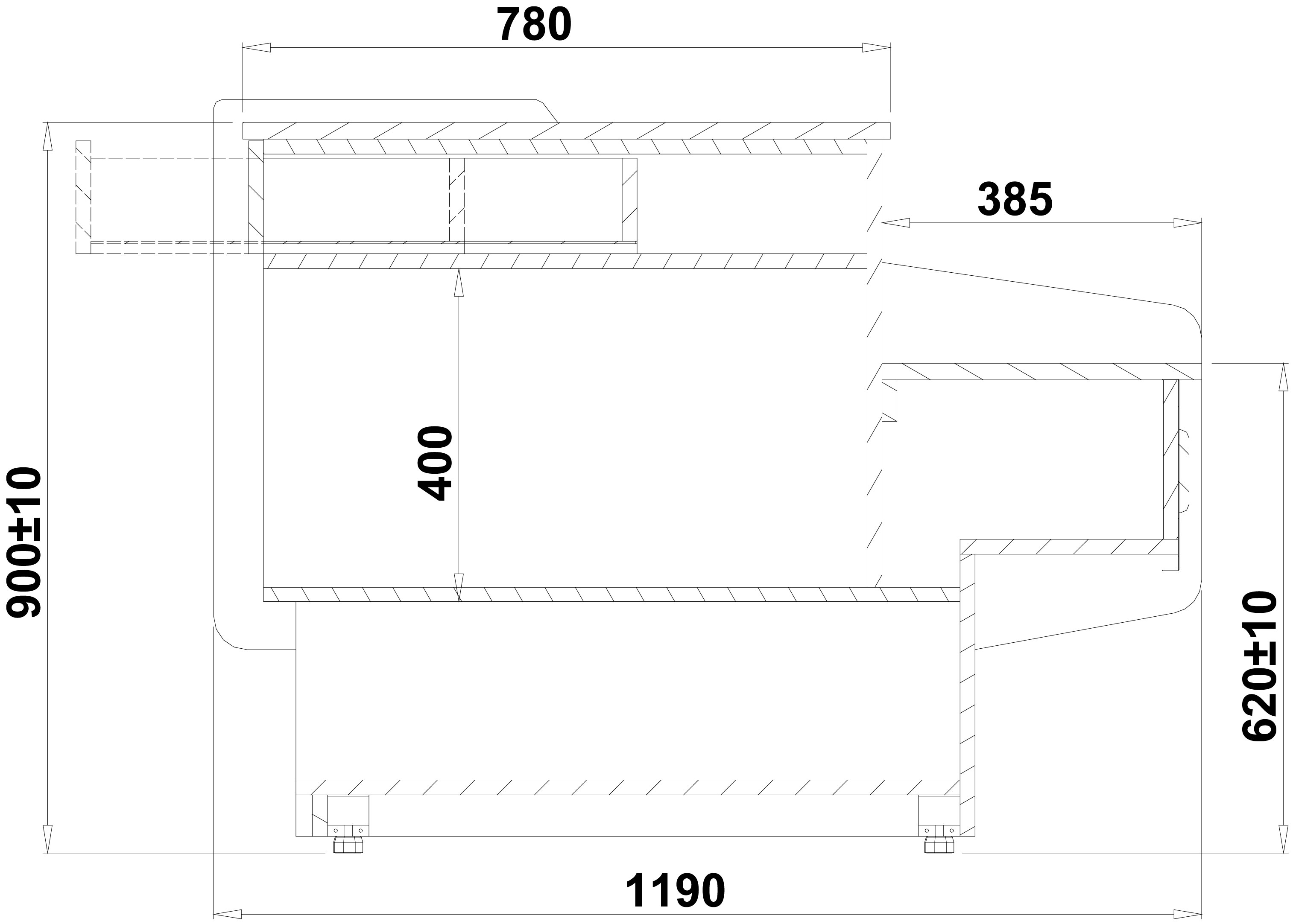 | front z blachy nierdzewnej z listwą drewnianą o wys. 100mm |