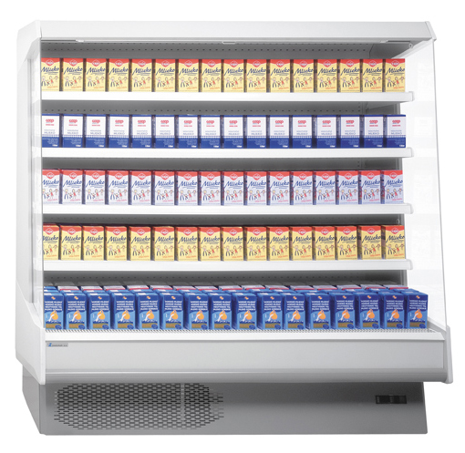 Regał Milo idealny do ekspozycji nabiału, wędlin. Występuje w czterech długościach 1250, 1875, 2500 mm i maksymalnej wysokości 1950 mm. Regał posiada własny agregat chłodniczy. Regał w wersji M1/M2 wyposażony jest w cztery półki o głębokości 400 mm z listwą cenową (40 mm) z możliwością ustawienia w dwóch pozycjach. Wersja Milo H posiada dwie pochylone półki oraz górne lustro. Nowoczesny wygląd oraz ergonomiczny kształt pozwalają na maksymalne wykorzystanie miejsca.