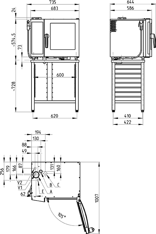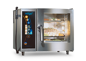 Piece konwekcyjno-parowe Retigo Vision 623 nadają się idealnie do kuchni z wydajnością do 50 porcji dziennie. Rozmiary pojemników gastronomicznych to GN 2/3 (354x325 mm) x 6 szt. Piece te można zainstalować na standardowej podstawie lub na konsoli naściennej czy bezpośrednio na stole. System generowania pary jest wyłącznie natryskowy. Źródłem ciepła jest energia elektryczna.